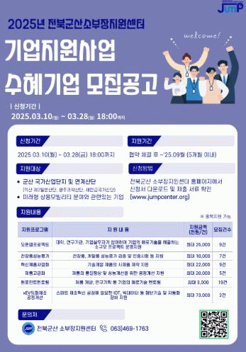 관련 문의는 군산시 신성장산업과 또는 전북군산 소부장 지원센터로 하면 된다.