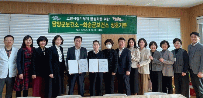 담양군에 따르면, 지난 12일 담양군 보건소에서 담양군과 화순군 보건소의 고향사랑기부제 상호 기부식을 진행했다.