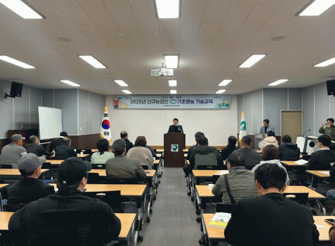 기초 영농 기술교육은 신규농업인의 성공적인 지역 정착과 안정적인 소득 기반 조성을 위해 마련됐으며 개강식에는 20대부터 60대까지 다양한 연령대를 가진 50여 명의 신규농업인 교육생이 참석해 열의를 불태웠다.