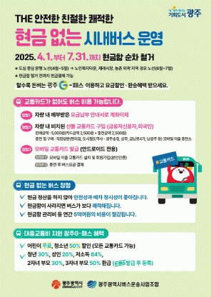 특히 광주시는 버스조합, 노조, 10개 버스업체와 협력체계를 구축하고 어르신들이 미리 교통카드를 준비할 수 있도록 노인복지타운, 경로당, 재래시장 등을 중심으로 광주G-패스 발급 안내 등 현장 캠페인을 전개하고, 디지털 문해 교육과도 연계할 계획이다.