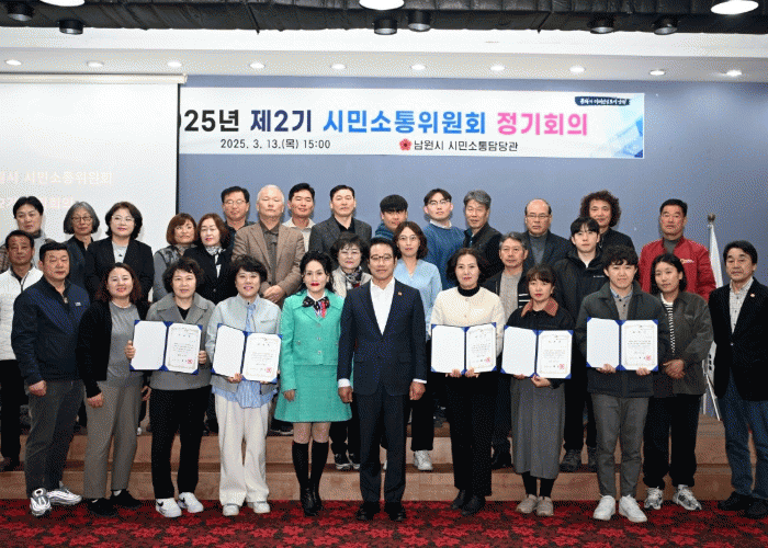 남원시 관계자는 “제1기 시민소통위원회가 시민과 소통하고 공감하는 기틀을 마련해 주었기에 제2기 시민소통위원회가 항상 시민의 입장에서 의견을 수렴하고 행정과의 중간역할을 훌륭히 수행하는 등 더 나은 남원을 만들기 위해 최선을 다할 것이다”고 전했다.