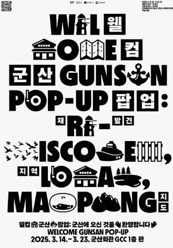 팝업에서는 ▲군산의 특색을 담아 ‘딩벳(dingbat, 그림 문자)’을 활용한 빙고 게임 ▲ 5.5m x 8m 크기의 대형 ‘웰컴 군산 지도’ ▲군산의 맛집 메뉴를 추천받을 수 있는 자판기 ▲탐조지도, 동네 서점 지도 등 시민들이 발굴한 다양한 군산 지도를 전시한 서재 ▲편한 의자에 누워 군산을 배경으로 한 영화 음악을 감상할 수 있는 공간 등이 마련되어 있다.