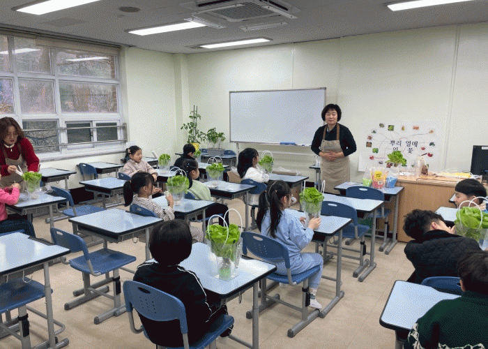 프로그램은 ‘우리학교 생태지도 만들기’, ‘작은지구 테라리움 만들기’, ‘기후변화와 곤충 알아보기’, ‘채소 꽃다발 만들기’ 등 학생들이 직접 만지고 관찰하는 놀이 중심의 농업체험활동으로 구성됐다.