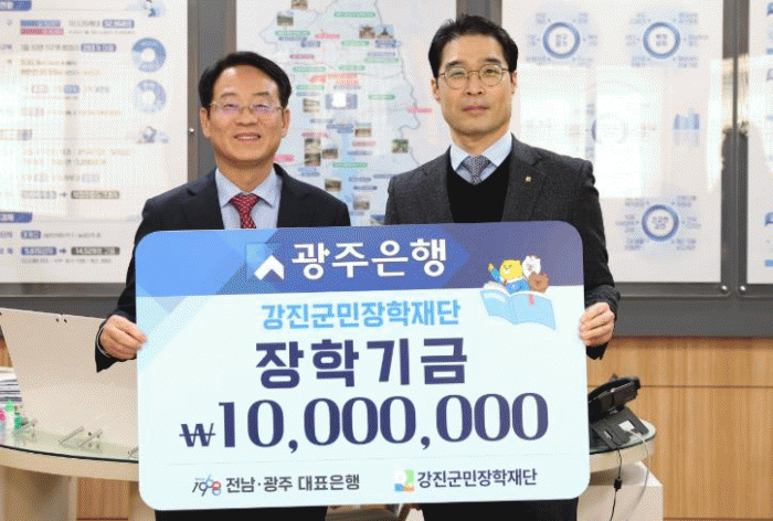 이날 기탁식에는 광주은행 김종훈 부행장과 배경대 강진지점장이 참석해 장학금을 전달했다.