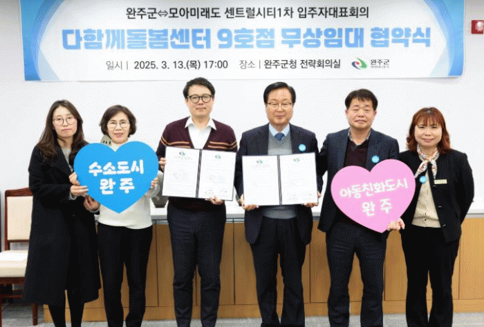 유희태 완주군수는 “운곡지구의 높은 돌봄 수요에 맞춰 다함께돌봄센터를 설치할 수 있도록 적극 협조해 주신 아파트 입주민들께 감사드린다”며 “앞으로도 맞벌이 가정 등의 양육 부담을 줄이고 아이와 부모 모두 행복한 돌봄 환경 조성을 위해 더욱 노력하겠다”고 밝혔다.