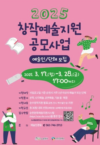 사업에 관한 자세한 내용은 공고문을 참고하거나 순천문화재단 예술진흥팀으로 문의하면 된다.
