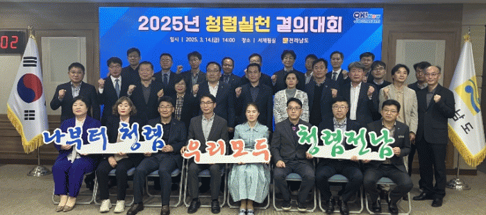 최광식 감사관은 “이번 청렴 실천 결의는 올해 청렴한 조직문화 구축을 위한 시작으로, 전남도와 22개 시군 청렴도 향상의 발판이 되길 바란다”며 “도민이 기대하고 신뢰하는 청렴한 도정 실현을 위해 전남의 모든 공직자가 앞장서 함께 노력하자”고 말했다.