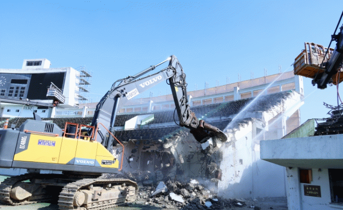 이를 위해 시는 지난해 6월 시민건강 보호를 위해 우선 석면을 철거한 데 이어 지난달까지 종합경기자 부지 내 전주푸드 건물과 수위실, 옥외화장실 등을 철거했다. 또, 종합경기장 내부의 창호와 전기시설, 관중석, 생활 집기, 잡철물들을 모두 철거한 후 이날 구조물 철거를 시작했다.