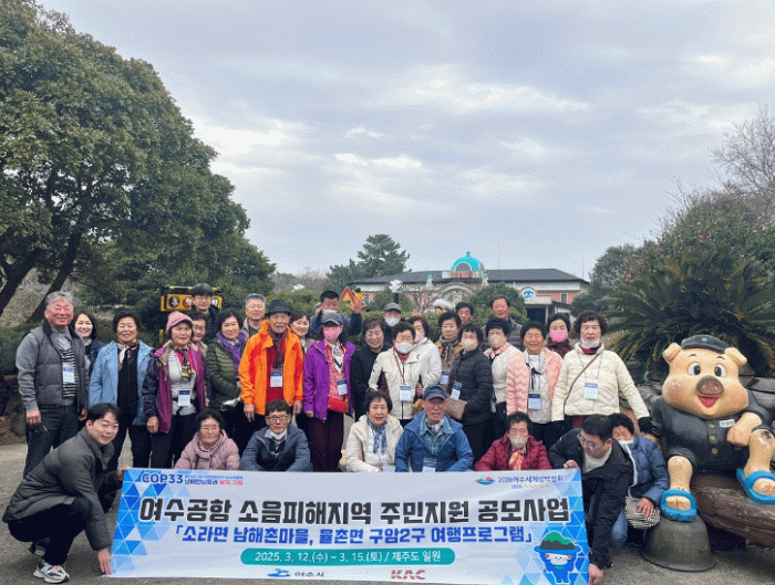 시 관계자는 “이번 여행프로그램 외에도 여수공항 소음 피해지역 주민들을 위한 다양한 사업을 지속 추진할 예정”이라며 “오랜 기간 불편을 감내해 온 주민들께 이번 제주도 여행이 작지만 의미 있는 휴식의 시간이 됐길 바란다”고 전했다.
