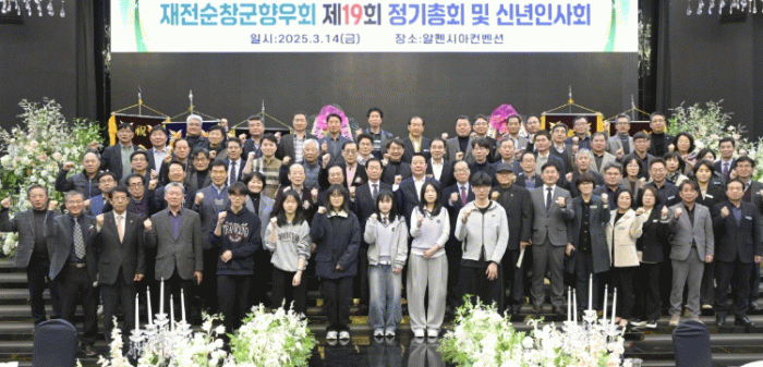 최영일 순창군수, 군청 간부공무원, 재전순창군향우회원 등 200여명이 한자리에 모여 고향 발전과 화합을 다진 이날 행사는 재전향우회 2024년 회계감사·결산보고, 2025년 사업계획 보고 등 정기총회에 이어 기념행사, 만찬 및 친교의 시간으로 진행됐다.