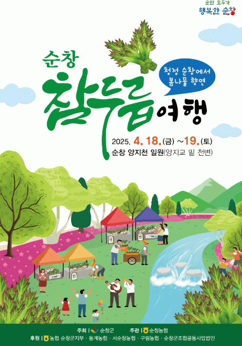 순창군이 주최하고 순창농협이 주관하는 이번 행사는 명품 생태하천으로 변모하는 양지천을 새로운 랜드마크로 부각시키고, 순창의 대표 농산물인 참두릅과 봄나물을 알리기 위해 마련됐다.