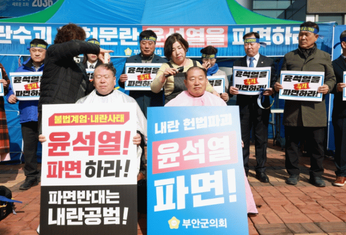 아울러 부안군의회 의원들은 윤석열 대통령의 파면 선고가 내려질 때까지 24시간 천막 시위 농성을 이어가겠다는 입장을 밝혔다.