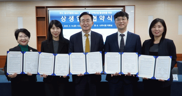 윤병태 나주시장은 “협약에 참여한 산업체와 대학교와 함께 푸드업사이클링 공동 연구개발, 기술 공유, 실증 및 생산을 통해 지속가능한 식품산업 생태계 조성과 농가 소득 증진, 지역경제 활성화 방안을 모색해가겠다”고 밝혔다.