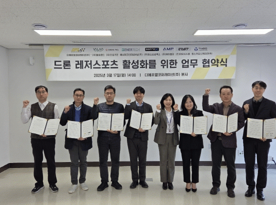 남원시는 3월 17일, 남원시 노암동 노암산업단지내 디에프엘코퍼레이션㈜사무실에서 국토부 2025년 드론실증도시사업의 참여기업인 디에프엘코퍼레이션㈜이 남원시 드론 산업의 발전에 상호협력을 위해 7개 국산드론기체개발기업과 업무협약을 체결했다고 밝혔다.