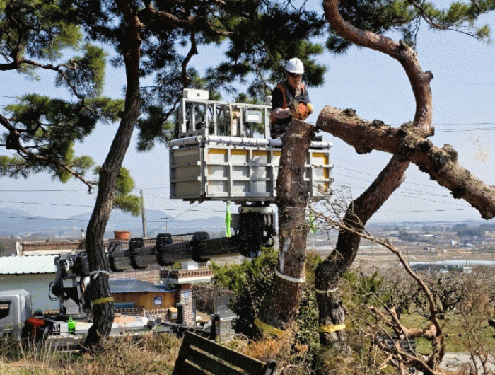 작업은 중장비 투입과 벌목 전문가 파견으로 안전하고 신속하게 진행 중이다. 나머지 나무들은 추가예산을 편성해 추진한다.