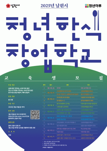 남원시 관계자는 “청년한식창업학교는 단순한 요리 교육을 넘어 실제 창업으로 이어질 수 있도록 체계적인 지원을 제공하는 프로그램”이며 “한식당 창업을 희망하는 청년들의 많은 관심과 참여를 바란다”고 밝혔다.