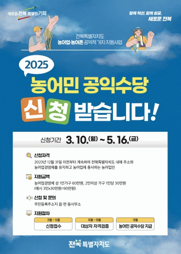 올해부터 농민 공익수당 지급 방식이 기존 '농가 단위'에서 '농업인 개별 단위' 지급으로 변경되면서 부모와 함께 농사를 짓는 청년 농업인, 여성 농업인도 개별적으로 지원을 받을 수 있게 됐다. 또한, 남원시에 새롭게 정착한 농업인의 조기 정착을 돕기 위해 지원 요건이 완화되어 거주 및 농업경영체 등록 요건이 기존 2년에서 1년으로 단축됐다. 이러한 지원 확대에 따라 남원시는 76억여원의 사업비를 편성했다.
