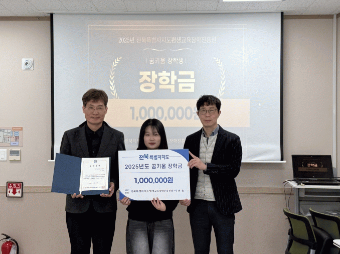 신수연 청소년은 “장학금을 지원해주신 전북특별자치도평생교육진흥원과 남원시학교밖청소년지원센터에 감사의 마음을 전하고 싶다”라며, “우리 사회에 꼭 필요한 사람으로 성장하여 사회에 보답하겠다”라고 소감을 전했다.