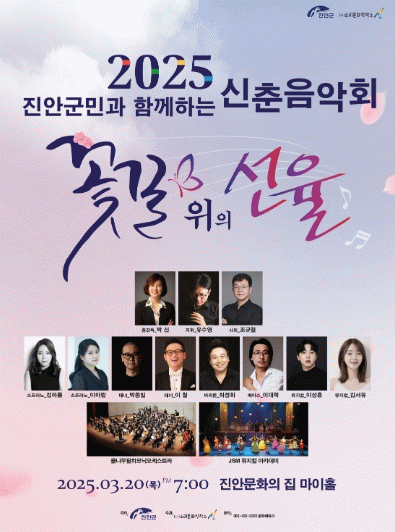 김종길 문화체육과장은 “이번 음악회가 봄의 시작을 알릴 수 있도록 온 가족이 즐길 수 있는 따뜻하고 풍성한 공연을 준비했으니 많은 군민들께서 오셔서 함께 즐기시길 바란다”고 전했다.