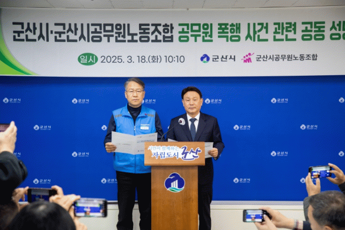 18일 강임준 시장과 박덕하 노조위원장은 기자회견을 열고, 최근 공무원 폭행사건에 대해 깊은 우려와 유감을 표하며 엄정한 수사를 촉구하는 공동 성명서를 발표했다.