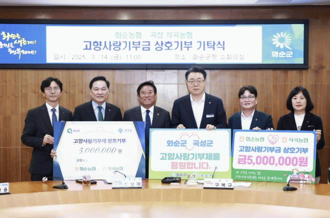 이번 상호 기부는 화순농협과 곡성 석곡농협 직원들이 각 500만 원씩 기부하면서 이루어졌으며, 이를 통해 두 지역은 고향사랑기부제의 취지를 살려 지역경제 활성화에 기여할 것으로 기대된다.
