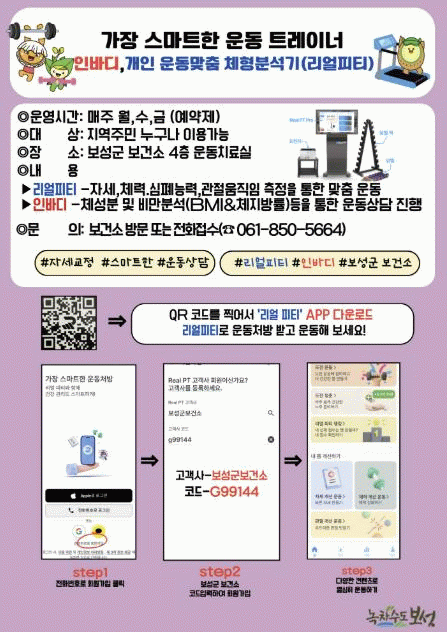 보성군보건소 관계자는"AI 트레이너를 활용한 개인 운동 맞춤처방 프로그램은 군민 누구나 무료로 이용할 수 있다."며"체형분석기를 활용한 과학적인 신체검사와 맞춤형 운동처방을 통해 주민들이 건강한 생활을 유지할 수 있도록 적극 지원하겠다."고 말했다.