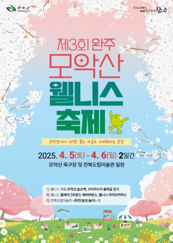 유희태 완주군수는 “벚꽃이 만개하는 4월에 모악산에 방문하셔서 몸과 마음을 가볍게 힐링하는 시간을 갖으시길 바란다”며 “가족과 함께 자연의 싱그러움을 만끽 할 수 있는 프로그램에 많은 참여를 바란다”고 말했다.