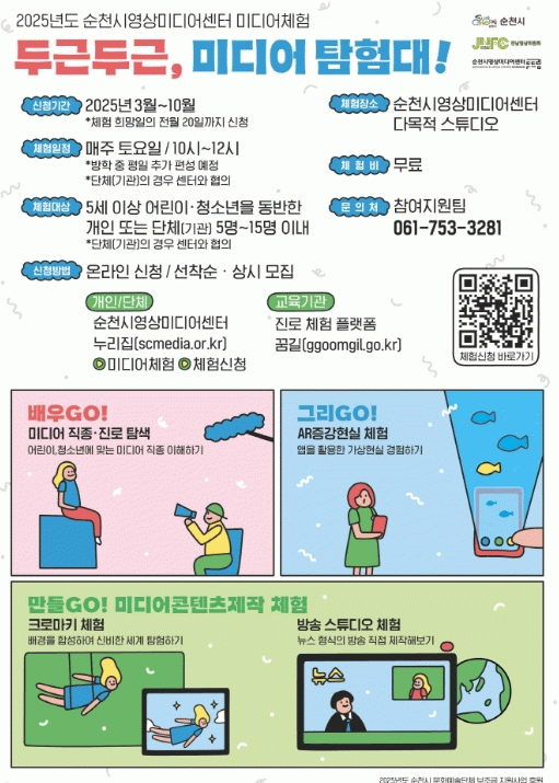순천시영상미디어센터 관계자는 “어린이와 청소년들이 다양한 체험을 통해 미디어로 새로운 경험을 쌓고 의미 있는 시간을 보내길 바란다”고 말했다.