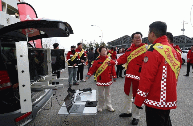 지난 17일 압해읍 홍보 캠페인에서는 산불예방 홍보물 전달과 함께 산불 출동차량을 이용해 산불예방 홍보영상 시청과 산불상황 시 조치 행동에 관해 시연도 보였다.