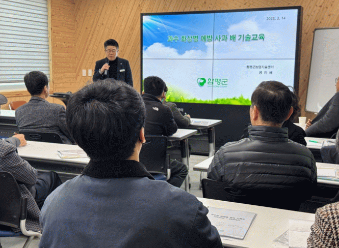 함평군은 19일 “함평군 농업기술센터가 지난 14일 지역 내 사과 및 배 재배 농업인을 대상으로 과수화상병 예방을 위한 병해충 관리 교육을 진행하고 방제약제 3종을 무상으로 제공했다”고 밝혔다.