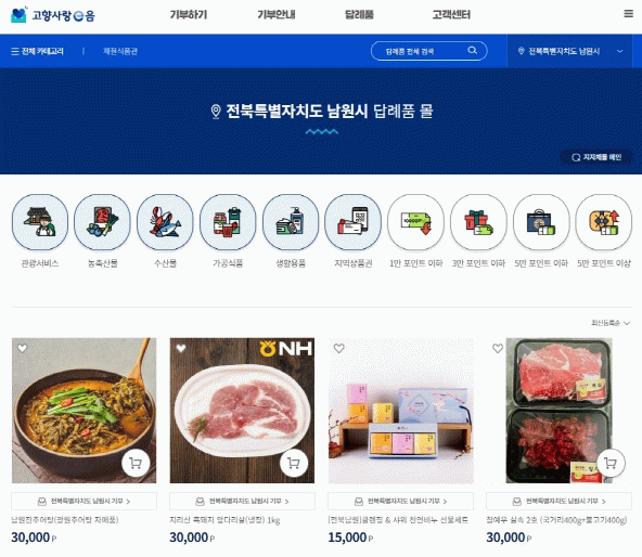 고향사랑기부제는 주민등록상 주소지를 제외한 지자체에 연간 2,000만원까지 기부하고 세액공제(10만원까지 전액 공제, 10만원 초과분은 16.5% 공제)와 답례품(기부금 30% 이내) 혜택을 받는 제도이다. 남원시는 그동안 모인 기부금으로 2024년에 미래인재 해외영어캠프 지원(중학생 24명, 2억원) 및 남원제일고 현장실습용 푸드트럭 지원(1대, 8천만원) 사업을 시행했다. 또한 기부자가 자신의 기부금이 사용될 특정사업을 선택해 기부하는 지정기부제를 도입하여 ‘2026년 남원 인재학당 기자재 구입 지원’을 목표로 모금에 박차를 가하고 있다.