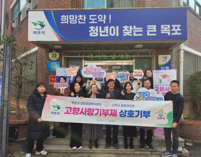 최양선 상동장은 “고향사랑기부제 상호 기부를 추진할 수 있도록 뜻을 모아주신 양 지자체 직원분들께 감사드린다”며, “이번 기부가 민간으로도 확대되어 고향사랑기부제가 활성화되기를 바라며, 목포와 나주의 상생 발전을 응원한다”고 전했다.