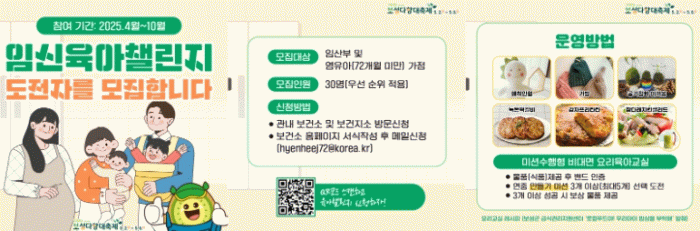 ‘2025년 임신육아 챌린지’는 3월 12일부터 참가자를 모집하고 있으며, 4월부터 10월까지 운영된다.