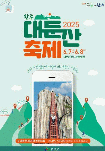 한편, ‘완주 대둔산 축제’는 매년 여름 대둔산의 아름다운 풍경과 함께 진행되는 대표적인 지역축제로 자리 잡고 있으며, 완주의 자연경관과 문화를 전국에 알리는 중요한 역할을 하고 있다.