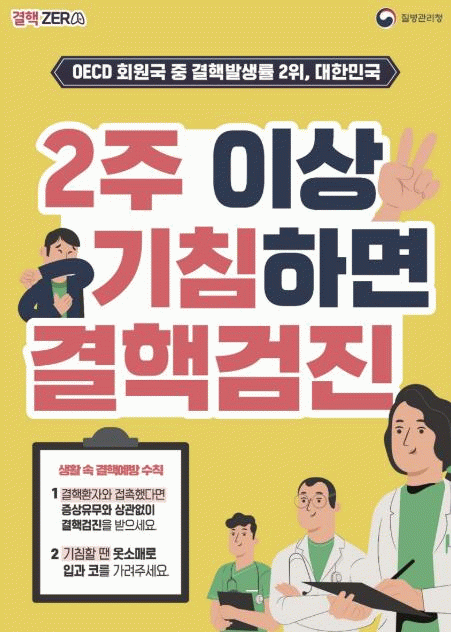 결핵은 2급 법정 감염병으로 우리나라 법정 감염병 중 사망률 1위를 차지하며 기침, 재채기 등으로 배출된 결핵균이 공기를 통해 다른 사람에게 감염되는 질병이다.