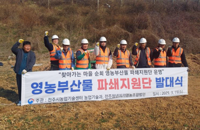 파쇄지원단은 청년농업인들로 구성된 전주청년지기영농조합법인에서 2개 조(7명)로 연중 운영할 예정으로, 이들은 트랙터 부착용 파쇄기 및 가지파쇄기를 활용해 농업 현장에서 영농부산물 파쇄작업을 실시하고 즉시 퇴비로 활용할 수 있도록 지원한다.