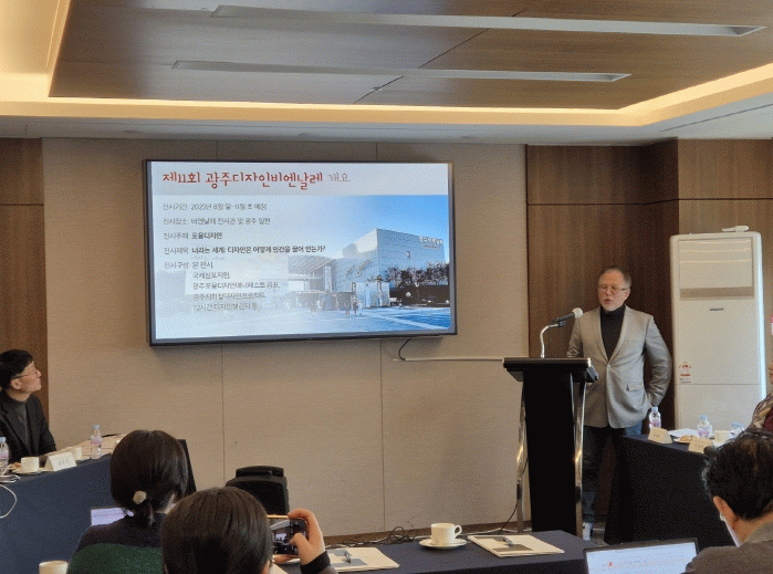최수신 총감독(미국 SCAD 교수)은 이날 서울 한국프레스센터에서 열린 ‘2025 광주디자인비엔날레 마스터플랜 보고회’에서 “포용디자인은 모두의 관점에서 바라볼 수 있는 디자인”이라며 “2025 광주디자인비엔날레는 ‘물처럼 공기처럼 우리 삶에 스며있는 디자인이 우리 모두가 빛나고 신나게 멋지게 살 수 있는 환경을 어떻게 만드는가? 디자인이 세상의 모든 존재에게 선한 영향을 미칠 수 있지 않을까?’라는 고민에서 시작한다”고 밝혔다.