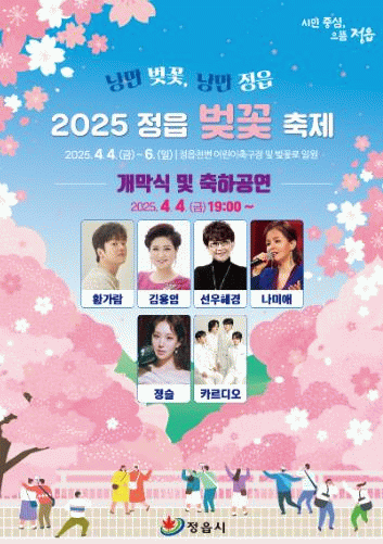 이학수 시장은 “축제 기간 벚꽃이 절정에 이를 것으로 예상되는 만큼 방문객들이 다채로운 프로그램과 함께 잊지 못할 봄의 추억을 만들 수 있기를 바란다”며 “안전을 최우선으로 고려해 정읍만의 특색 있는 축제가 될 수 있도록 철저히 준비하겠다”고 밝혔다.