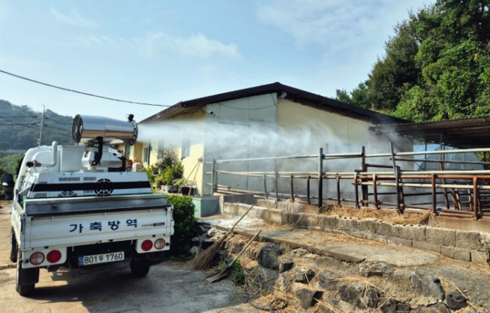시는 현재 가축 차량 거점소독시설 2개소를 24시간 운영 중이다.