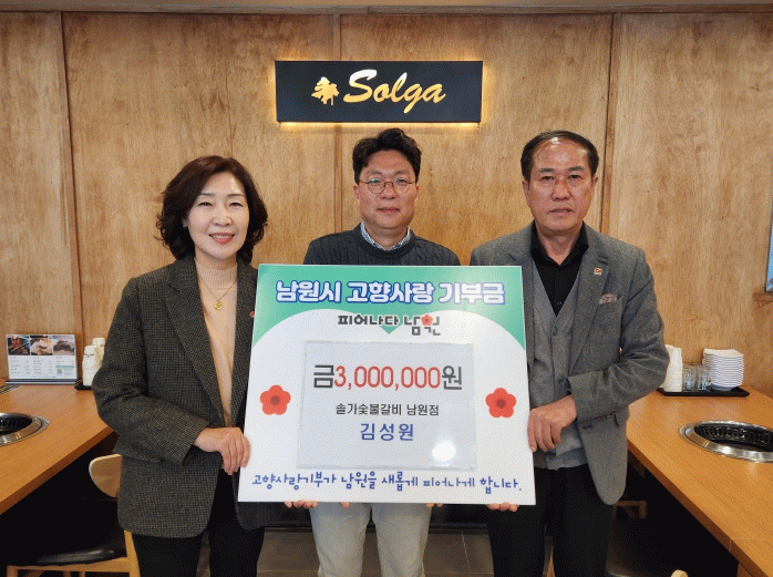 김성원 대표는 올해 1월 25일부터 왕정동 일원에서 솔가 남원지점을 개업해 운영하고 있으며, 남원과의 소중한 인연을 계기로 지역에서 받은 사랑을 고향사랑기부금으로 환원하고자 한다고 밝혔다.
