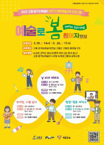고흥 꿈꾸는예술터에서 진행되는 ‘예술로 봄’ 프로그램은 참여자의 이야기와 삶을 문화예술로 표현할 기회를 제공해 지역 아동과 청소년의 창의성과 예술성을 함양하기 위한 프로그램이다.