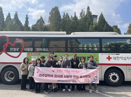 이번 ‘사랑의 헌혈’ 봉사활동은 전주장학숙과 전북혈액원의 협력으로 입사생과 직원이 다수 참여했으며 오전 10시부터 17시까지 전주장학숙 주차장 내 전북혈액원 이동헌혈버스에서 진행됐다.