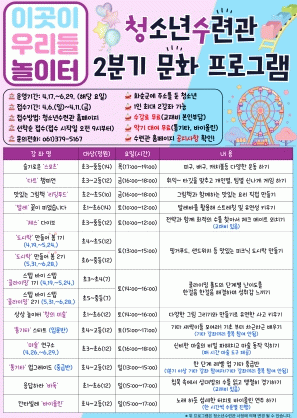 이번 2분기 프로그램은 청소년들이 창의력과 자기 표현력을 키울 수 있도록 스포츠·요리·악기 등 다양한 분야의 강좌를 운영하며, 수련관 이용 청소년의 관심사와 요구를 반영했다.