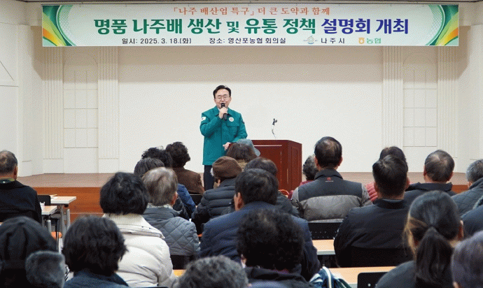 나주시는 본격적인 영농을 앞두고 지역 농협 5곳 공선회원 300여명을 대상으로 ‘나주배산업 발전을 위한 유통 및 정책 설명회’를 개최했다고 20일 밝혔다.