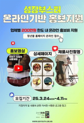 주요 지원 내용은 제품 사진 촬영, 상세페이지 제작, 홍보 영상 제작 등 전문 마케팅 콘텐츠 제작으로 창업가들은 고품질의 시각적 콘텐츠를 확보하여 온라인 마케팅의 효과를 극대화할 수 있을 것으로 기대된다.