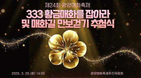 한편, ‘333 황금매화를 잡아라’ 추첨이 끝나면 바로 ‘매화길 만보 걷기’ 경품 추첨이 이어질 예정이다.