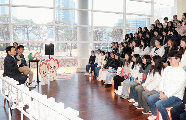 강 시장은 5·18민주화운동과 노벨문학상을 수상한 한강 작가 등 민주도시 광주를 소개하면서 “여러분의 부모님들이 80년 5·18 이후 광주를 찾아주고 민주주의에 헌신한 덕분에 광주는 민주주의 도시로 꽃피웠다. 5·18을 배우기 위해 광주를 찾아줘서 고맙다”고 감사 인사를 전했다.