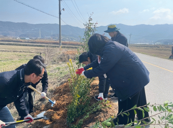 이번 나무 심기 행사를 통해 고읍리 주변 약 100m 구간의 꽃길이 완성되면서 마을 주민들이 지나가며 즐길 수 있는 경관이 조성될 것으로 보인다.