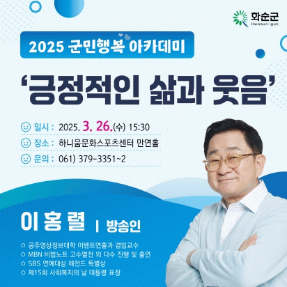 ‘2025년 군민행복 아카데미’는 26일 개강식을 시작으로 목포대학교 평생교육원 주관으로 매월 다양한 저명인사를 초빙해 강연을 진행할 예정이다.