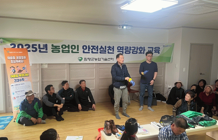 함평군은 23일 “2025년 농업인 안전 실천 역량 강화 교육이 지난 19일 월야면 양지마을 회관에서 양지마을 주민과 나비골 딸기 연구회 회원 등 40여 명을 대상으로 진행됐다”고 밝혔다.